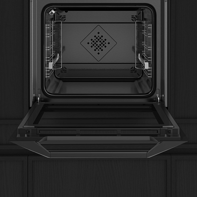 После выбора запрограммированного рецепта и ввода веса блюда, духовой шкаф автоматически определяет соответствующий режим приготовления, а также идеальную температуру и время приготовления с точностью до минуты. Это настоящий эксперт в приготовлении изысканных блюд.