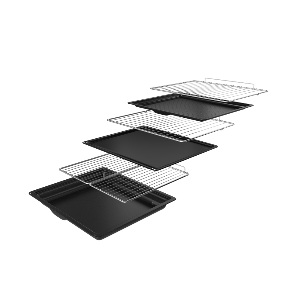 • 1 поддон для сбора капель 45 мм, 1 перфорированный противень 20 мм, 1 противень 8 мм